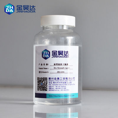 JH-1216 é melhorado baseado em nosso agente original da força seca e adota a tecnologia a mais avançada e as matérias primas ultramarinas. É o copolímero do acrilamido e de ácidos acrílicos, usando a estrutura da malha do polímero para aumentar o número de ligação do hidrogênio na área mútua da fibra à fibra. Sua área da combinação de polímeros longos da corrente pode ser deformada, assim aumentar a dureza bond. Poderia melhorar a resistência à tração, a rigidez, a força do anel-esmagamento, a força de estouro, a resistência de dobramento e outros índices físicos.