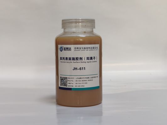 O agente de cola de superfície de JINHAODA JH-611 é um agente de cola acrílico do estireno cationic, que seja projetado especialmente para a cola de superfície do papel. Tem as características da boa compatibilidade, da baixa viscosidade, da afinidade forte, e da boa resistência de água. Pode melhorar a força molhada e a resistência de água do papel.